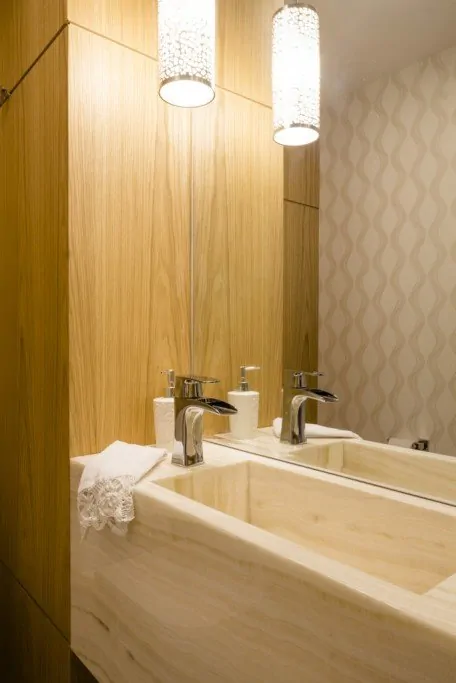 Lavabo com bancada esculpida em Ônix – Por Tieppo Interiores
