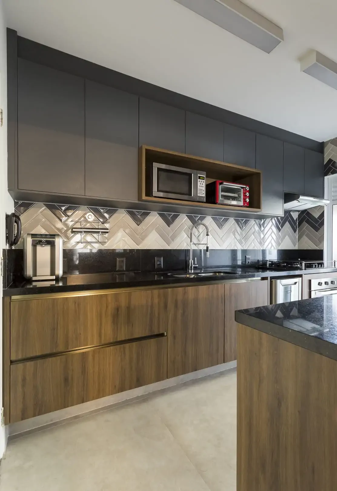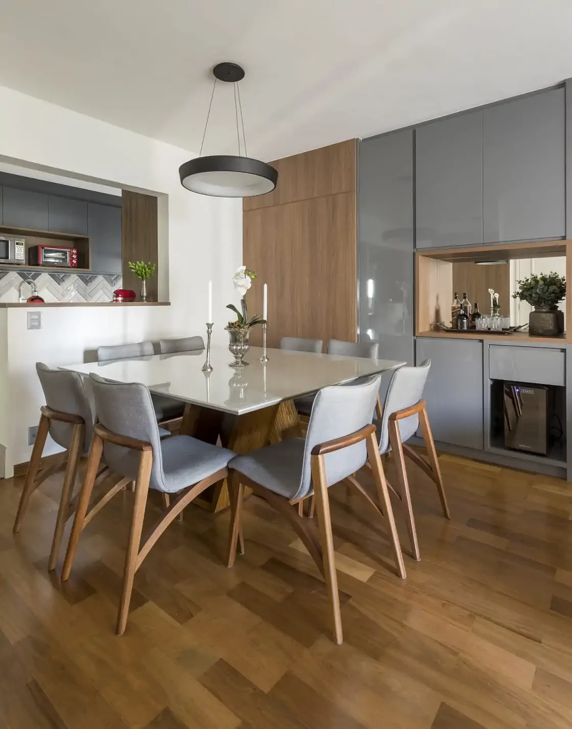 Neste projeto de reforma, um casal com um filho em idade escolar sentia falta de ter um espaço mais aconchegante para receber os amigos e que ao mesmo tempo também tornasse a rotina da família mais prática.
