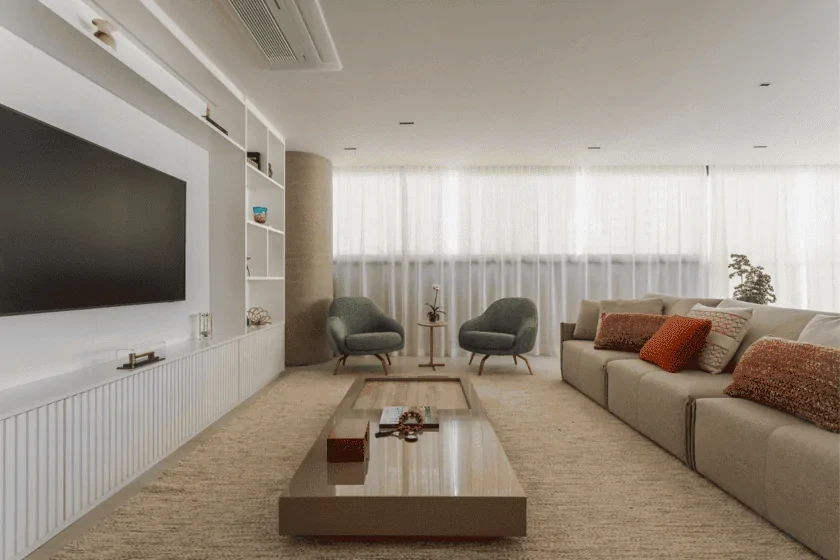 O resultado da reforma do apartamento são ambientes que combinam elegância e conforto em perfeita harmonia. Cada canto foi cuidadosamente desenhado para proporcionar momentos especiais, seja para receber amigos ou desfrutar de uma tranquilidade.